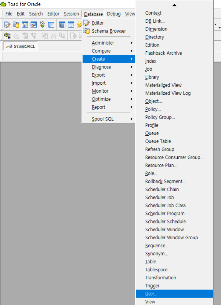 Oracle DB 백업(덤프) 전 tablespace, user 생성(toad)